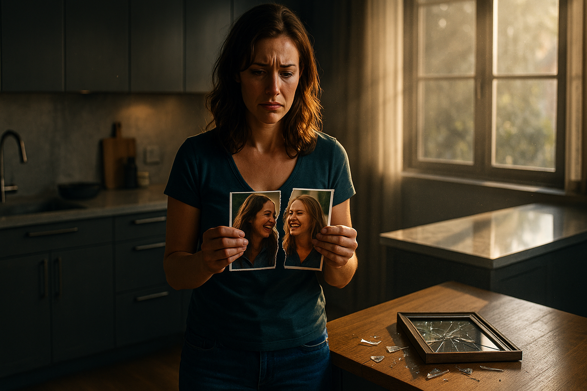 Рядом на полу лежали осколки разбитого стекла и фотография с надписью "Подругам навсегда". Анна подняла ее, долго смотрела на молодые лица, потом медленно порвала пополам.