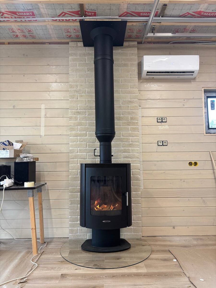 26.05.2025. Ленинградская область. КП Лесной хутор. Печь камин ТМФ Визиера. Изолировали стену👌. Приклеили плитку👌. Камин установили на стекло👌. Вывели дымоход в кровлю👌. Изолировали дымоход в перекрытии👌. Сделали гидроизоляцию кровли👌. Протопили камин, проверили работу и рассказали заказчику о правилах эксплуатации😊☺️👍. Всем добра❤️.