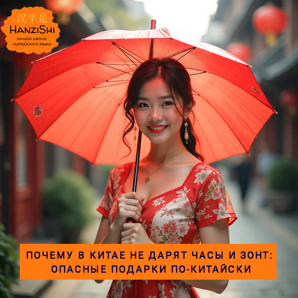 Китай — страна с богатой культурой и огромным количеством суеверий. Если вы думаете, что подарок всегда радует, то в Поднебесной это не так. Особенно, когда речь идёт о часах и зонтах. Сегодня разберём, почему в Китае не дарят часы, откуда взялся страх перед зонтами и какие ещё подарки лучше обойти стороной. Главная причина связана с языковой игрой. Фраза «подарить часы» по-китайски звучит как 送钟 (sòng zhōng). Проблема в том, что это звучит почти так же, как выражение 送终 (sòng zhōng) — «провожать в последний путь». Представьте ситуацию: вы дарите красивые наручные часы другу-китайцу, а он слышит намёк на похороны 😱. Неудивительно, что китайцы стараются избегать таких подарков. 👉 Запомните: если хотите преподнести часы, лучше отдать их за символическую сумму. В этом случае подарок считается «купленным», и плохая примета снимается. Зонт по-китайски — 伞 (sǎn). Звучит он похоже на слово 散 (sàn) — «расставаться, расходиться». Дарить зонт — всё равно что намекать на разлуку. Представьте