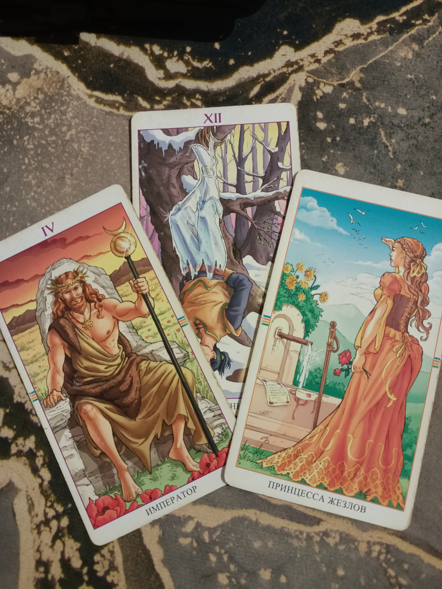 Это может быть как мужчина так и женщина. Опирайтесь на свою интуицию , на свои ощущения . Представьте человека, который словно находится на перепутье своей судьбы. Он способен смотреть на мир под необычным углом, замечать то, что ускользает от других. Как Повешенный, он обладает удивительной способностью к самопознанию и глубокому анализу ситуаций. Иногда может казаться, что он немного отстранён от реальности — словно наблюдает за происходящим со стороны. Но за этой внешней отрешённостью скрывается сильная личность. В нём есть стержень Императора — природная властность, умение брать ответственность и вести за собой других. Он не просто наблюдает — он способен организовать и направить энергию в нужное русло. При этом его власть не давит, а скорее вдохновляет окружающих. С ним чувствуешь себя защищённым, за ним как за каменной стеной . Это человек у которого всегда есть четкий план и все на своих местах . Особенно интересно дополняет образ Принцесса Жезлов. Это говорит о том, что несмо