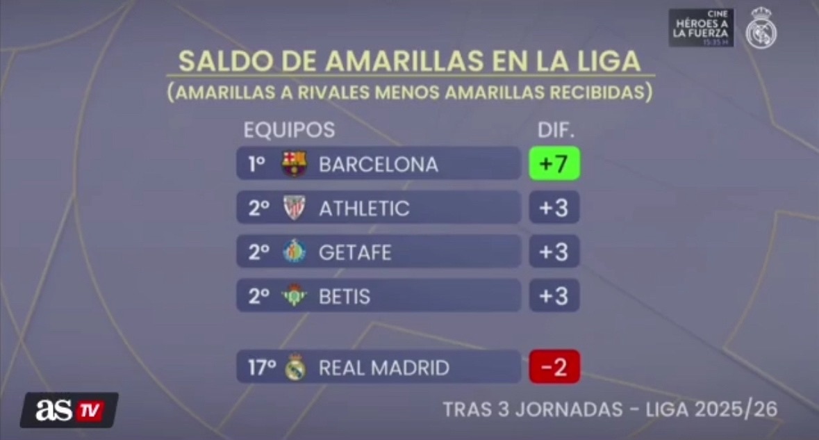 Скучали по новым видео клубного телевидения «Мадрида»? Мастера подготовили свежее разоблачение судебной системы в испанском футболе, в этот раз пришли к обычному выводу: рефери помогают «Барселоне». Сотрудники RMTV занялись подсчетом желтых, выданных клубам за первые три тура Ла Лиги в сезоне-2025/26. Первый показатель – баланс «горчичников»: из карточек, показанных соперникам, вычли желтые, полученные командой. «Барса» осталась в плюсе на семь предупреждений – это лучший показатель лиги. А «Реал» ушел в минус на два «горчичника», заняв 17-ю строчку. Затем выяснили, сколько фолов должен совершить соперник на команде, чтобы ему выдали «горчичник». На игроках «блауграны» нужно сфолить чуть больше трех раз, а соперник «сливочных» в среднем видит перед собой желтую спустя 13,5 фолов. Это первое и 16-е места в чемпионате. Финальное: сколько фолов должен совершить игрок команды, чтобы получить желтую. Каталонцам в среднем показывают карточку после 11 фолов, а подопечным Хаби Алонсо хватает 7
