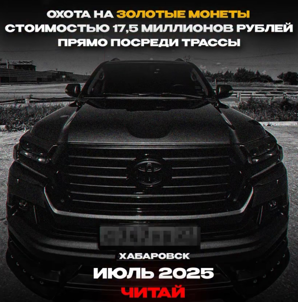 Хабаровск. Июль 2025. Вечер. Асфальт блестит после дождя, фонари отражаются в лужах, улицы пустеют. Черная Toyota Land Cruiser 200 медленно плывет по мосту через Амур. Тонировка в круг, никто не видит пассажиров. Двигатель рычит ровно, будто предупреждает о чем-то. В багажнике — старинный деревянный сундук с золотыми монетами XVII века. Вес — 12 кг, монеты чистого золота, каждая с чеканкой нерчинских купцов. Оценка — 17,5 миллионов рублей. Историк проверяет запирающий механизм — старый замок с тремя секретными штифтами. В салоне трое: водитель, специалист по безопасности и историк, который знает каждый миллиметр сундука. GPS заблокирован, телефоны отключены. Дорога через центр почти пуста, но камеры фиксируют каждый поворот. На мосту Land Cruiser неожиданно останавливается. Историк осторожно достает сундук, проверяет замки, делает несколько прикосновений — словно сундук сам подсказывает, куда идти. В зеркало заднего вида — черный седан без номеров, медленно приближается. Пресл