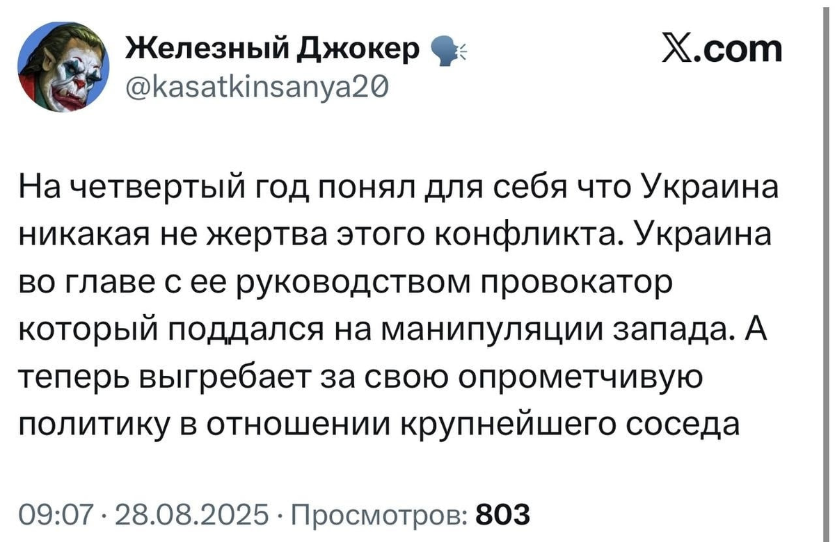 Все больше и больше таких постов попадается. Украинцы, затравленные пропагандой, начинают понимать что происходит. Они понимают, что независимость от России и зависимость от всего мира это реальность, удручающая реальность. Если в простом сравнении, то Украина это как младший нашкодивший брат. Он что-то творит и получает воспитательный подзатыльник от старшего - от России. К сожалению, здесь не подзатыльники... Здесь гибнут люди. Но Актеру все равно - для него Украина этолишь площадка для зарабатывания