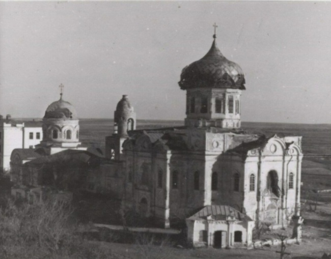 Фотография от 14 октября 1942 года, во время оккупации фашистами города Богучар. В городе Богучаре шесть церквей: два собора, две приходския церкви, одна кладбищенская и одна домовая при тюрьме.