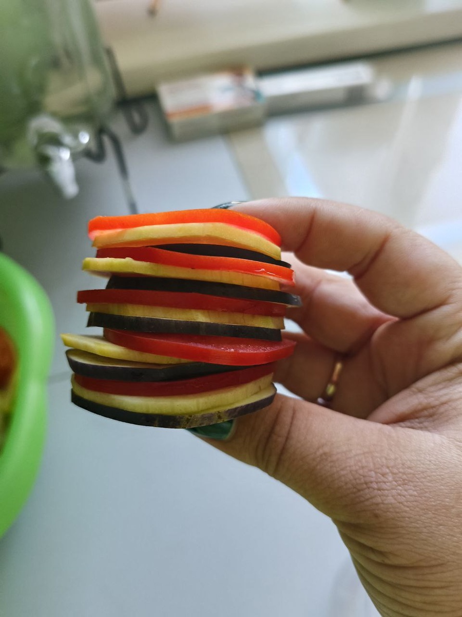 Нарезать тонким кольцами, раскладывать по очереди