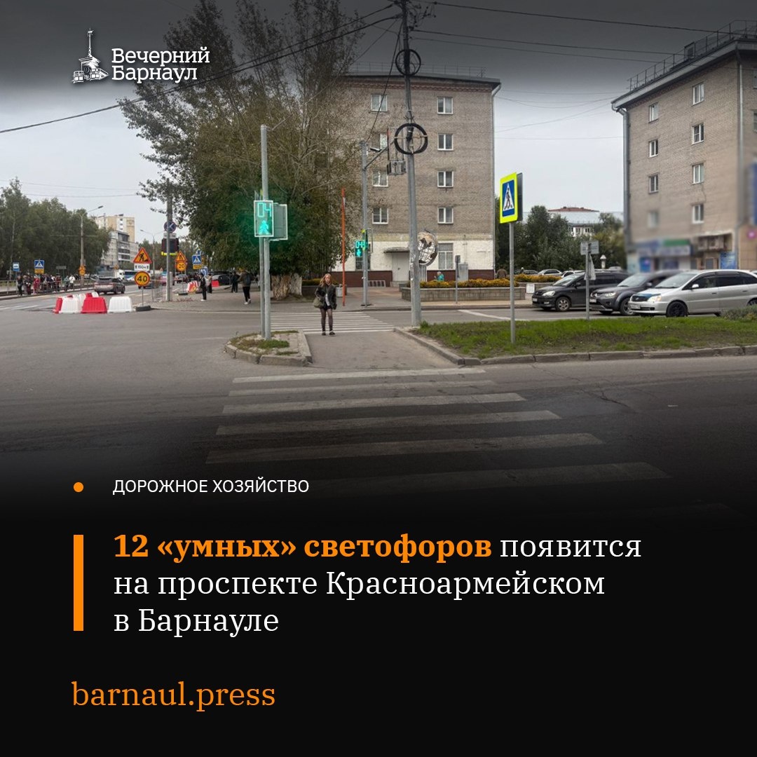 Интеллектуальную транспортную систему продолжают внедрять в Барнауле. 🚦В частности, на проспекте Красноармейском появится 12 «умных» светофоров, ещё такой же объект установят на пересечении проспекта Ленина и улицы Ползунова. Пока специалисты установили консольные стойки для транспортных и пешеходных светофоров, проложили волоконно-оптические сети, питающие кабели. Следующий этап — монтаж, а также подключение дорожных контроллеров и детекторов транспорта. 📌 Работы планируется завершить до 30 сентября. Фото: barnaul.org @barnaul