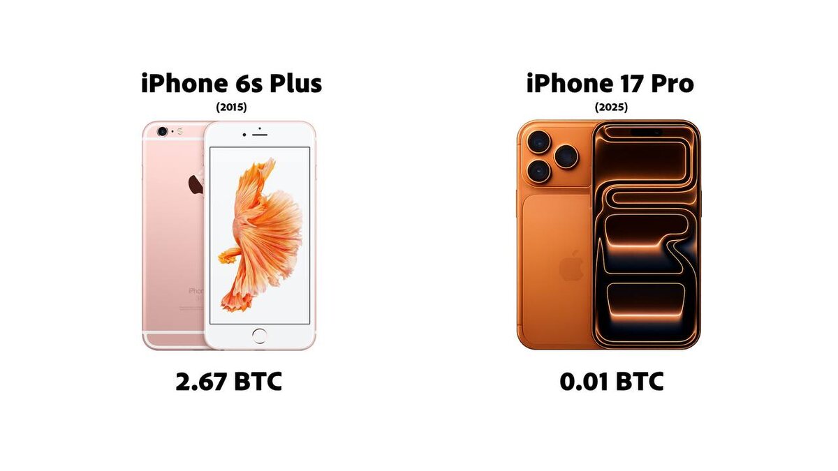 πΈΠ‘ΡΠΎΠΈΠΌΠΎΡΡΡ iPhone Π² BTC: 2015: 2,67 BTC 2025: 0,01 BTC
