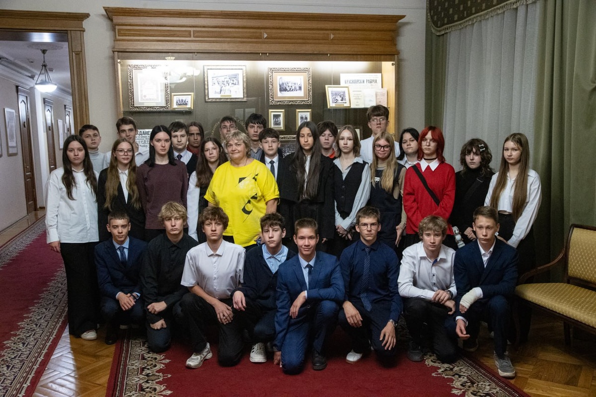 Группа девятиклассников гимназии №10 совершила экскурсию в краевой парламент. Председатель Законодательного Собрания края Алексей Додатко организовал познавательную встречу для школьников после урока «Разговор о важном». Во время визита школьники получили подробную информацию о принципах работы законодательной власти и процессе принятия законов. Особый интерес у ребят вызвало выступление депутата Александра Новикова, который поделился личным опытом работы в политике и рассказал о новых спортивных объектах в Дивногорске, появившихся благодаря усилиям депутатского корпуса. Алексей Додатко пригласил лидеров школьного самоуправления в свой кабинет для откровенного разговора о ежедневной работе депутата и значимости участия молодежи в общественной жизни города и края. Ребята смогли задать интересующие вопросы и получить профессиональные разъяснения.Встреча завершилась памятной общей фотографией и вручением полезных сувениров с символикой парламента. Возможно, среди участников экскурсии —