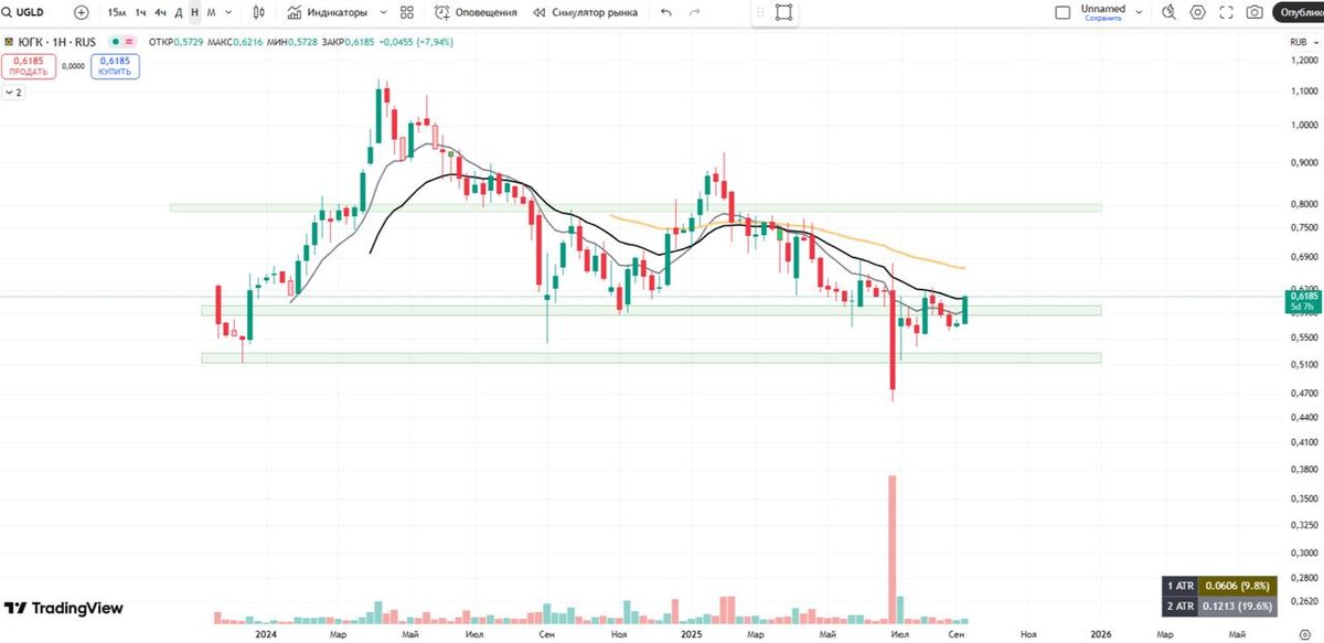 ⛏ ЮГК. Из гадкого утенка в лебедя? Еще летом вокруг $UGLD ходила масса новостей, которая обрушила котировки компании. В моменте мы видели -30%. А все на фоне задержания основного владельца миллиардера Константина Струкова. Но вот компания уже оказалась в руках у государства. До всех этой заварушки ЮГК - выглядел интересно с точки зрения темпов роста бизнеса. Компания только только наращивала объемы добычи, и была крайне интересна для покупки. 💥Добавим к этому мощнейший драйвер роста: золото вновь покоряет вершины, находясь выше 3650 долларов за унцию. Рост на 40% только за текущий год! Естественно инвесторы после покупок золота побежали скупать золотодобытчиков. Но так как у нас основной претендент Полюс золото, его котировки уже давно обновили исторические максимумы. Добавьте к этому начало ослабления рубля: теперь золотодобытчики зарабатывают не только на росте долларового (эталонного) золота, но и на рублевой переоценке. ☝️ Но ЮГК до сих пор торгуется около цены IPO и на 80% д