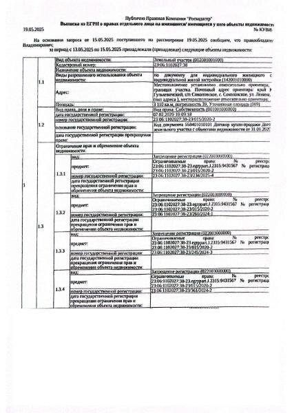 Название: Д-к: Костюк Д.В. Земельный участок, площадь 3110 кв.м., кадастровый номер 23:06:1102027:38. Здание жилое, площадь 45,3 кв.м., кадастровый номер 23:06:1102027:91. Адрес: Краснодарский край, Гулькевичский район, с. Соколовское, ул. Ленина, д. 5. Начальная цена 2 538 700 руб., задаток 380 805 руб., шаг аукциона 25 387 руб., ув. 1264 Канал: Госземля Краснодарский край Область: край Краснодарский Гулькевичский район Район: с. Соколовское Населенный пункт: ул. Ленина, д. 5 Локация: Смотреть на карте ВРИ: Для индивидуального жилищного строительства Кадастровый номер: 23:06:1102027:38 | 23:06:1102027:91 Кадастровая стоимость: - Вид сделки: Продажа Площадь: 3110 м² Начальная цена: 2538700.00 руб. Дата завершения: 10.10.2025 Подробнее: ГИС ТОРГИ #госземля #земляотгосударства #земля #земельныйучасток #земельныеторги #торги #аукцион #продажаземли #продажа #краснодарскийкрай
