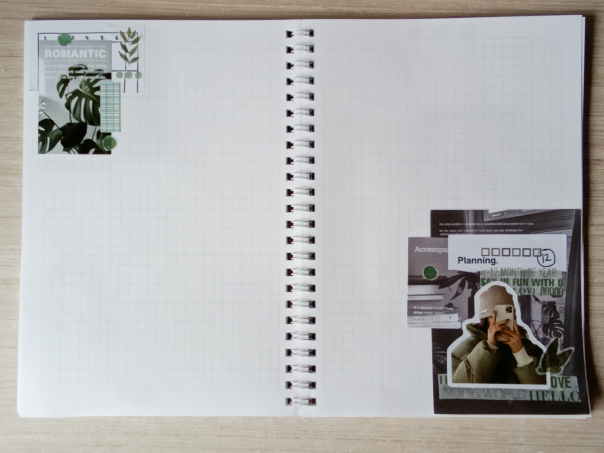 Всем чернично-космический привет! Продолжаю листать оформленные странички моего личного дневника. Покажу третью подборку коллажей, в которую включила десять оформлений. Некоторые попроще, некоторые чуть сложнее. Но все интересные. Надеюсь, что они принесут вам вдохновение! Я часто делаю тематические коллажи. Или же подбираю композицию по цвету. Здесь же я объединила оформление и тему - монстера. И цвет - зелёный. Склеила мини-коллажи быстро и старалась выбирать минимум материала. Как скомпоновались элементы, мне очень нравится. Один из любимых разворотов в блокноте. А здесь я просто вклеила то, что мне понравилось, не особо задумываясь, как будут сочетаться стикеры и бумага. На соседней странице две скрапбумаги были лишними. Я делала записи сверху листочков, и выглядит это неопрятно. Прогулочные оформления. Применила наклейки с пейзажами в стиле аниме. Вроде мило. Немного осенние странички. Коричневые цвета не люблю применять, но иногда подходят только они. Здесь я собрала оформ