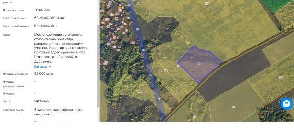 Название: Земельный участок с кадастровым номером 62:20:0040101:436, категория – земли сельскохозяйственного назначения, вид разрешенного