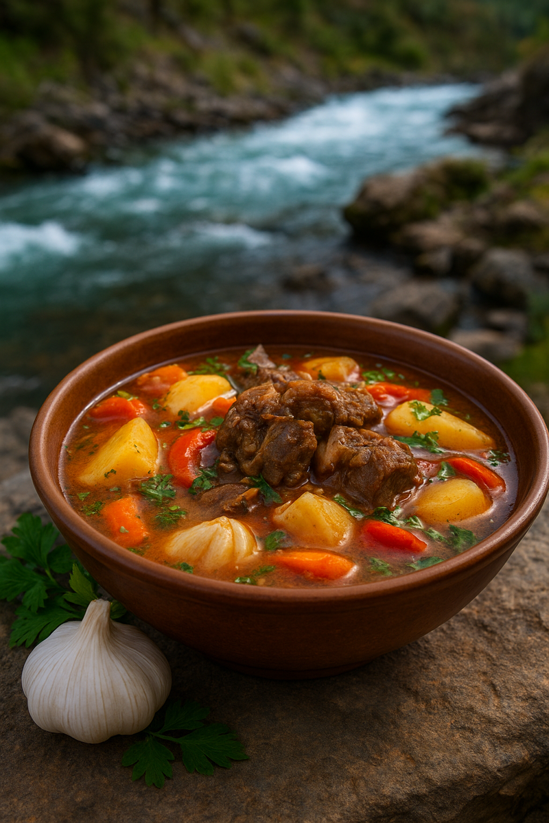 Есть блюда, которые не просто насыщают — они рассказывают историю. Шурпа с бараниной именно такая. Это не просто суп, а настоящий символ восточного гостеприимства, который веками собирал за одним столом друзей и близких. Представьте: шумная компания в горах, костёр у реки, казан, из которого доносится чарующий аромат баранины, овощей и специй… Именно в таких условиях шурпа открывается во всей своей силе и вкусе. Сегодня я хочу поделиться с вами рецептом классической шурпы, которую легко можно приготовить дома — но с атмосферой, словно вы перенеслись в сердце Востока. Шурпа — блюдо древнее, как кочевые дороги Средней Азии. Его готовили на костре в казане, добавляя всё, что было под рукой: мясо, коренья, травы. Но главным ингредиентом всегда оставалась баранина — сочная, наваристая, придающая бульону тот самый вкус, ради которого люди готовы возвращаться к этому блюду снова и снова. И вот он — густой, наваристый суп, в котором плавают крупные куски мяса и овощей. Настоящая восточная гарм