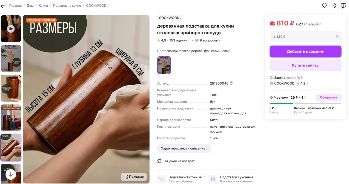 источником идей и хорошего настроения! Хочешь порядок на кухне без лишних усилий? Тогда эта деревянная подставка точно пригодится. В неё удобно сложить ложки, вилки, половники и прочие мелочи, чтобы всё было под рукой. Мне нравится, что она из натурального дерева - выглядит стильно и уютно. А ещё можно использовать не только на кухне, но и на рабочем столе для канцелярии. Артикул: 251350046 Такое покрывало из муслина - настоящая находка для тех, кто любит уют. Оно лёгкое, мягкое и дышащее, поэтому под ним комфортно и зимой, и летом. Мне нравится использовать его как плед для дивана или лёгкое одеяло. А ещё хлопок гипоаллергенный, подходит даже детям. И главное - ткань не требует глажки, просто постирал и снова красиво. Артикул: 253701164 Эта ваза словно создана, чтобы радовать глаз. Представь пышный букет, который наполняет комнату ароматом и теплом. Форма удобна