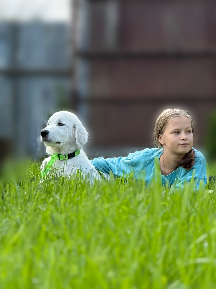 Маремма-абруцкая овчарка — это собака, которая с первого взгляда впечатляет своим величием и спокойной силой. Белоснежная шерсть, серьёзный взгляд, уверенная осанка… Кажется, что это суровый страж, но стоит ей оказаться рядом со своей семьёй, и открывается совсем другая сторона её характера: нежная, терпеливая и заботливая. Многие владельцы отмечают, что маремма удивительно бережно относится к детям. Для неё малыши — часть «стада», за которое она в ответе. Щенок, выросший в семье, быстро усваивает: ребёнок — это тот, кого нужно охранять и сопровождать. Эта собака может часами лежать рядом, пока ребёнок играет, или идти за ним по двору, будто маленький телохранитель. Она терпит объятия, поглаживания и даже детские шалости, хотя, конечно, всё должно быть в разумных пределах. Владельцы шутят, что маремма — это «няня в белом меховом пальто»: собака может улечься у детской кровати, «дежурить» у коляски или сопровождать ребёнка до школьного автобуса. Важно помнить: маремма — крупная и сильн