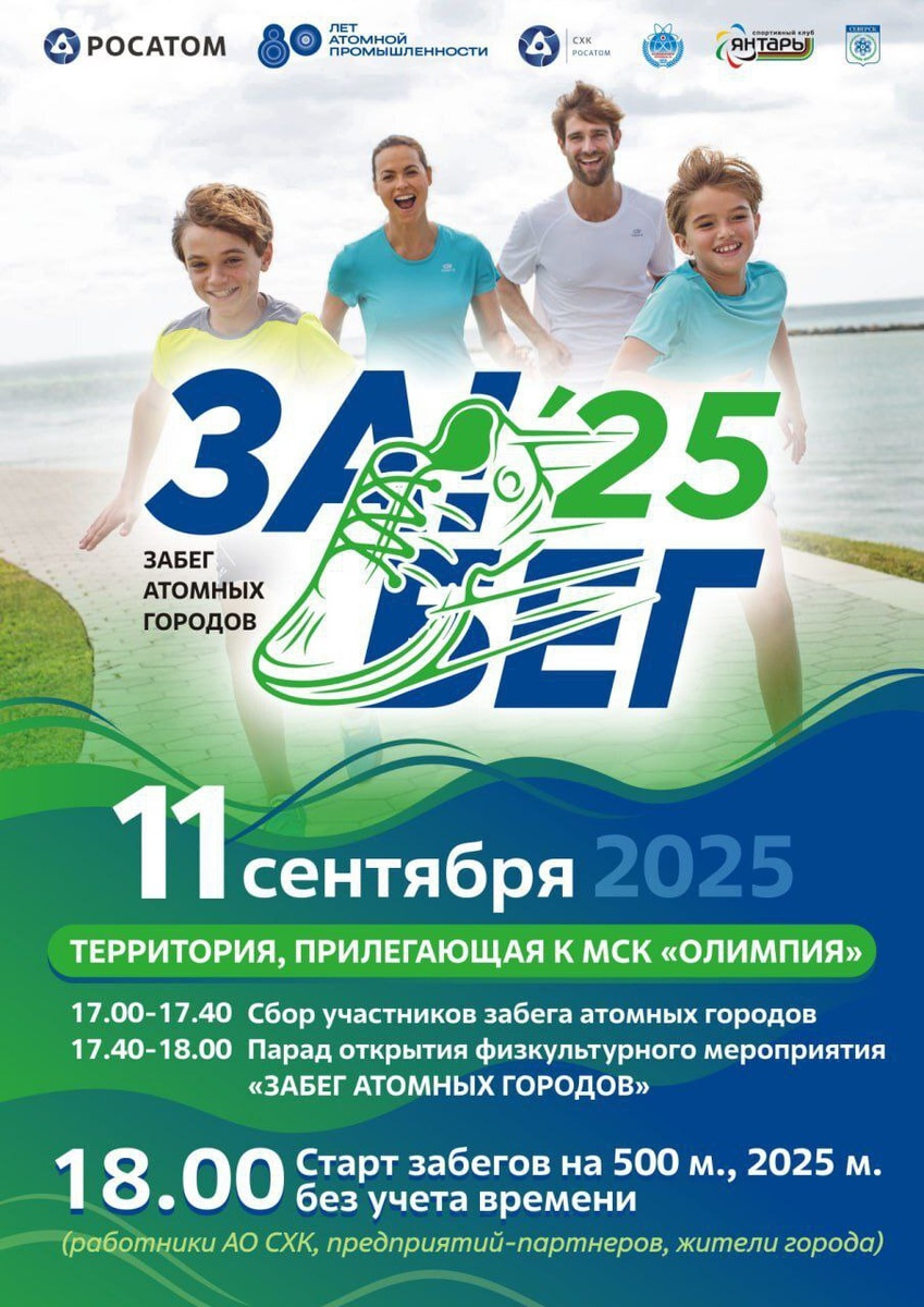Ежегодная акция во всех атомных городах России соберет свыше 20 тысяч человек. В Северске забег пройдет 11 сентября в 18.00 на территории возле МСК «Олимпия».