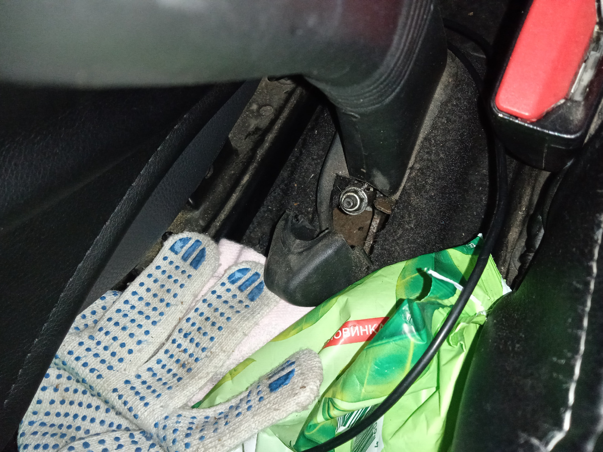 Приехал Рено Логан со скрежетом сзади. Для начала ослабляем ручник.