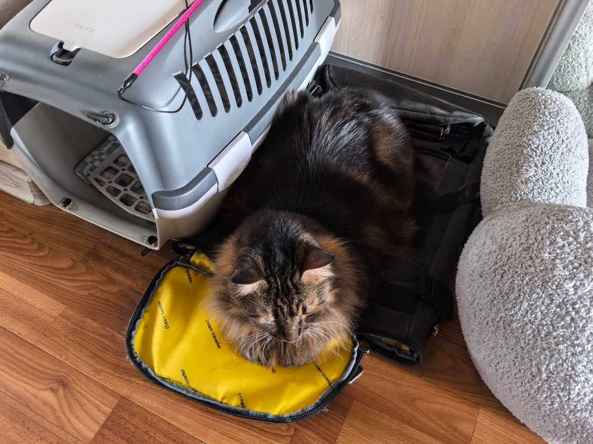 Всем привет! С вами Кузя Кусалочкин (он же царь Кузьма I). Сегодня я расскажу, как чуть не остался без еды, и о своих впечатлениях от нового наполнителя. Утром хозяйка проснулась немного раньше. А я и рад был. Проснулся, пришёл на кухню и получил свой паштетик. На новые каналы я сейчас не подписываюсь. Дружить, забежать в гости времени нет. Хозяин собирался на работу, а я решил посидеть на рюкзачке: И тут хозяйка, как всегда, пристала со своими фоточками. Надо сказать, что с таким освещением часто очень красивые фотки получаются: и каждую шерстинку видно, и глазки-бусинки получаются. Посмотреть в камеру я отказался, всё время отворачивался. Ушёл хозяин на работу, а следом за ним и хозяйка собралась и ушла. Ей надо было на лапикюр. И хорошо, что хозяйка вспомнила, что надо бы мне еды оставить. Ну а так как она заранее ничего не разморозила, то положила мне вторую порцию паштета. А я только рад был. Правда, маловато было. После лапикюра хозяйка успела ещё на пляж сходить и заехать за с