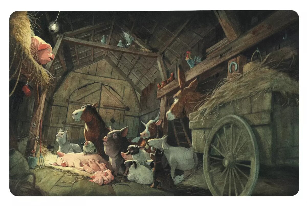 Всем привет! Надеюсь, ваш день проходит хорошо, ведь мы публикуем второй рассказ из раздела Книжный спринт - "Скотный двор" Джорджа Оруэлла. Произведение довольно известное, и я не удивлюсь, если большинство его прочли, но не рассказать о нем было бы преступлением. На одной из многочисленных ферм, полной разнообразием животных, старым хряком по имени Главарь был виден сон, прекрасный сон о свободе домашнего скота. Идея, что так лелеяли наши четвероногии друзья, в скором времени была реализована, а "Господский двор" торжественно сменил название на "Скотный двор". С этого момента животных ждало равноправие, общий труд на благо их общины и горы урожая. Но смогут ли они удержать мечту в своих лапах? В этом произведении мы найдем и утрированные отсылки к советскому строю, и сходство некоторых персонажей романа с историческими деятелями: Сталиным, Троцким и Лениным. Оруэлл представил нам свою вариацию развития событий коммунизма, а мы в лице последующего поколения уже можем сравнить его взгл
