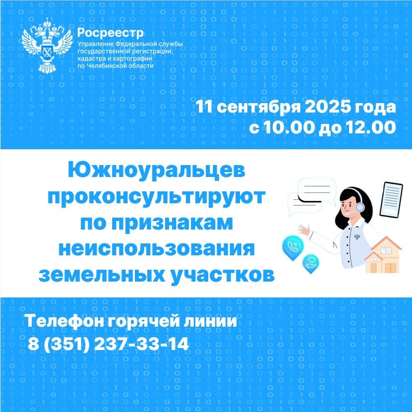 С 1 сентября 2025 года в России применяются признаки неиспользования земельных участков. В целях консультирования южноуральцев в Управлении Росреестра по Челябинской области ежемесячно будет работать тематическая горячая линия. Специалисты Управления Росреестра с начала года разъясняют жителям региона изменения земельного законодательства в части необходимости освоения участков и использования земли в соответствии с целевым назначением. С 1 сентября 2025 года постановлением Правительства РФ № 826 от 31.05.2025 установлены признаки неиспользования земельных участков в населённых пунктах, садовых и огородных участков. В целях оказания консультационной помощи по вопросам применения важных нормативно-правовых актов в челябинском Росреестре организована тематическая горячая линия для граждан. Чтобы вопросы, касающиеся новых критериев неиспользования земли, не вызывали затруднения у южноуральцев, теперь каждый второй четверг месяца до конца 2025 года эксперты будут на связи с землепользов