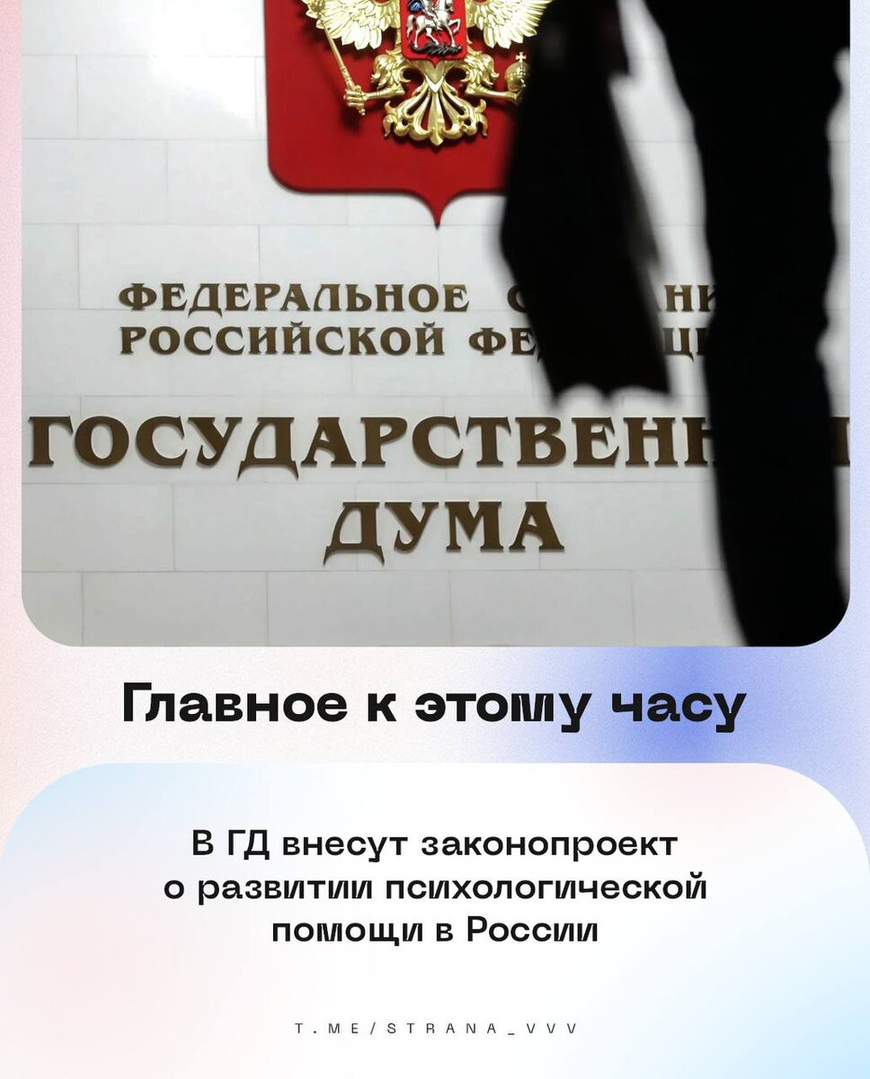 🇷🇺🇷🇺🇷🇺🇷🇺🇷🇺🇷🇺 на утро 10 сентября: 🔹 В ГД внесут законопроект о развитии психологической помощи в России. 🔹 У мигрантов, утративших законное основание для нахождения в РФ, остался последний день для своей легализации. 🔹 Сокращенная продолжительность рабочего времени установлена для сотрудников до 18 лет, инвалидов I или II группы, а также работников с вредными или опасными условиями труда. 🔹 Размер пенсии, если пенсионер сменил место жительства с одного региона на другой, пересчитывается с учетом районного коэффициента по новому месту жительства. 🔹 В ЛДПР предложили обеспечить садоводческие некоммерческие товарищества коммунальной инфраструктурой. 🔹 ЦБ РФ на заседании 12 сентября может снизить ключевую ставку до 16% годовых. 🔹 Силы ПВО за ночь сбили 122 украинских беспилотника над регионами России, сообщили в МО РФ. 💰Курсы валют: доллар — 📈83,24; евро — 📈98,03; юань — 📈11,70. 🇷🇺 В Стране. Подписаться