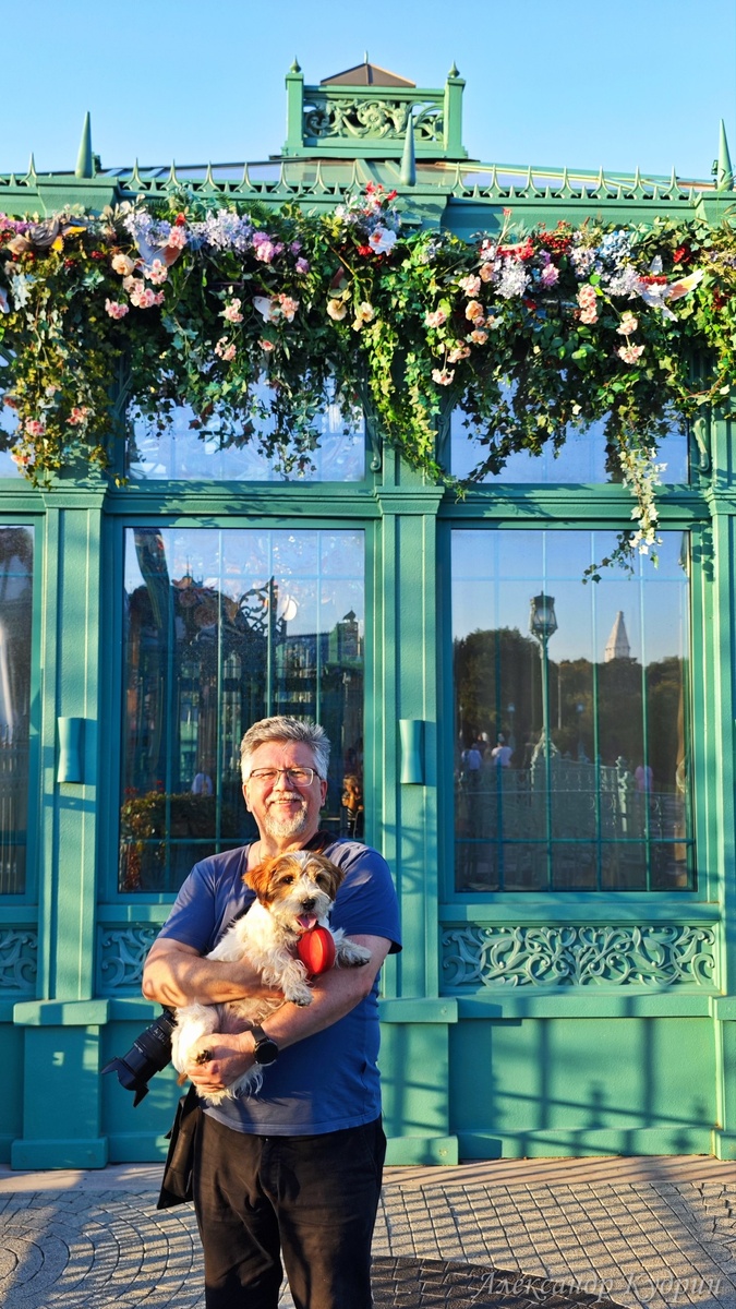 Погнали на Север! Большое осеннее автопутешествие с собакой. День 2. Москва. Представьте: вы приезжаете в место, где были много раз, и обнаруживаете там не просто парк, а этакий московский Мон-Сен-Мишель с торговыми рядами цвета морской волны, запахом свежей выпечки и панорамой, которая спорит с разрекламированными смотровыми. Мы встали после долгой ночной дороги только к обеду и сразу же направились в Коломенское. Кое-как запарковались (с этим, признаю, тут бывает туго) и пошли не к узнаваемой церкви Вознесения, а сразу вглубь парка а на запах корицы. И обомлели. Я тут не был лет десять, и всё изменилось. Практически сразу у входа вас встречают шикарные Торговые ряды. Они такие стильные, бирюзовые, будто покрыты благородной патиной, как старинная бронза. Всё вокруг утопает в цветах: яркие вазоны, подвесные кашпо, даже деревянные павильоны и карусель украшены живыми гирляндами. Прямо как в какой-то европейской деревне, только с нашей, родной, душевностью. Кстати, прямо здесь ме Пока