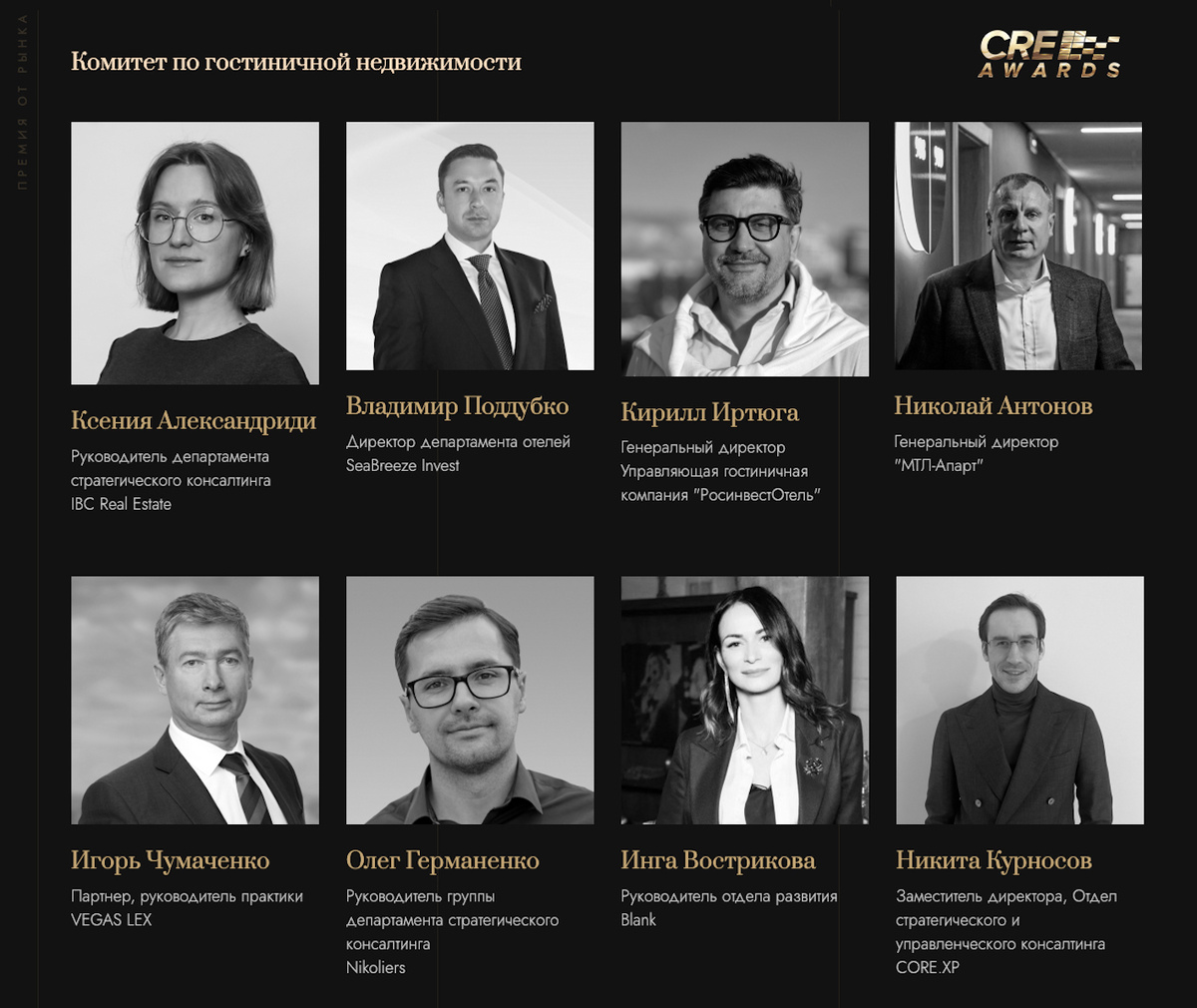 9 сентября состоялось итоговое заседание жюри премии CRE Federal Awards 2025 (Гостиничный комитет). 25 сентября в XXI The Carlton Moscow ежегодная федеральная премия в области коммерческой недвижимости CRE Federal Awards 2025 будет отмечать достижения девелоперских, инвестиционных, консалтинговых и управляющих компаний России за прошедший год. Ежегодная профессиональная премия в области коммерческой недвижимости Сommercial Real Estate Awards (CRE Awards) была учреждена в 2003 году по инициативе отраслевого бизнес-сообщества и за многие годы зарекомендовала себя как наиболее значимое событие индустрии коммерческой недвижимости. В составе Комитета жюри оцениваются и выбирают самые интересные и профессиональные проекты/компании России по "Гостиничной недвижимости". В состав жюри Гостиничного комитета премии ежегодно входит более 25 признанных экспертов гостиничной отрасли. Конкурсный отбор состоит из нескольких этапов, которые могут включать в себя в зависимости от номинации: количественн