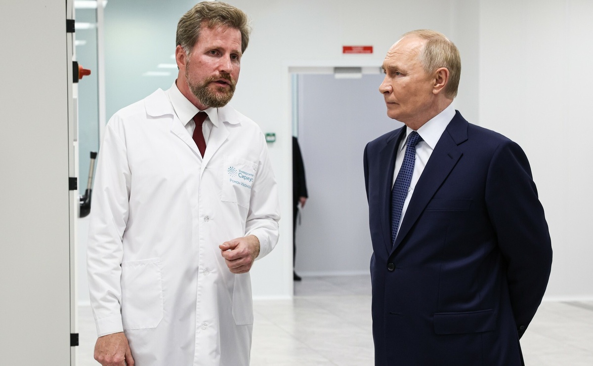 университета «Сириус» Владимир Путин посетил лабораторный комплекс научно-технологического университета «Сириус». Глава государства ознакомился с работой проектной, химической и аналитической лабораторий. Пояснения главе государства давали председатель учёного совета университета «Сириус» Роман Иванов, руководитель научной группы в области иммунотерапии рака Арсений Южалин, заместитель руководителя научной группы в области информационной безопасности Константин Гнидко. http://www.kremlin.ru/events/president/news/77965