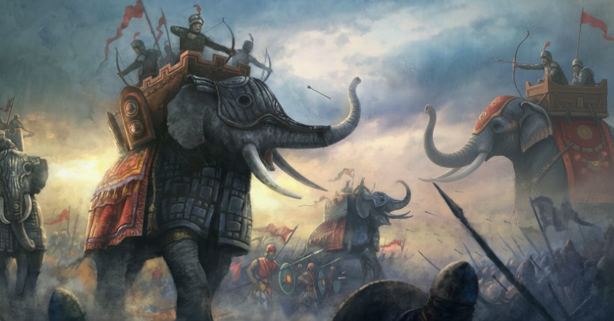 Древнеиндийская армия, известная как «чатуранга-бала», строилась по чёткому четырёхчастному принципу, который позже, по одной из версий, лёг в основу шахмат. Она состояла из пехоты, конницы, боевых колесниц и главного индийского «ноу-хау» — боевых слонов.