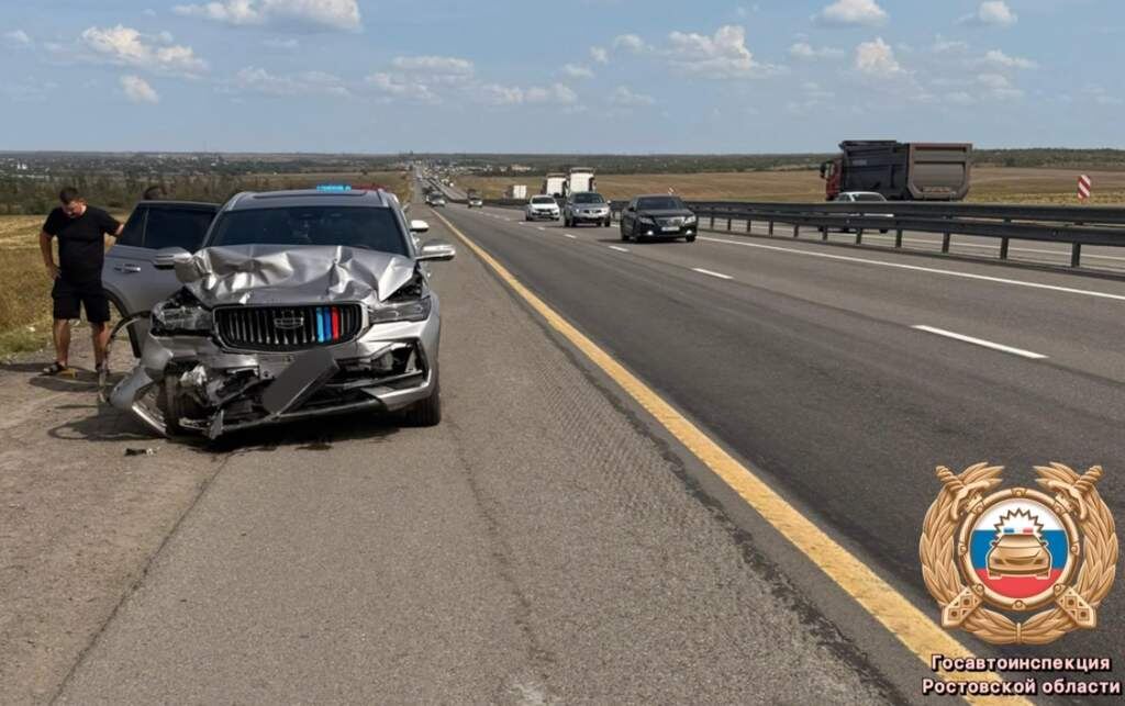 9 сентября в Ростовской области на трассе М-4 «Дон» в результате серьезной аварии с участием двух автомобилей пострадали пять человек, сообщает региональная Госавтоинспекция. Авария случилась в 10.40 на 996 км автодороги в Красносулинском районе. По предварительной информации, 57-летний водитель автомобиля Geely не выдержал безопасную дистанцию и врезался в ехавший в попутном направлении автомобиль Honda, за рулем которого находился 38-летний мужчина. В результате ДТП ранения травмы различной степени тяжести получили водитель Honda и трое его пассажиров, а также пассажир автомобиля Geely. Полицейские устанавливают все обстоятельства случившегося. Ранее мы рассказали, что на трассе в Ростовской области большегруз врезался в УАЗ, погиб водитель. Фото Госавтоинспекции РО