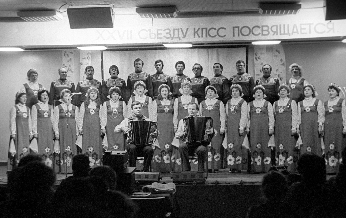 Внизу фотографии с отчётного концерта участников художественной самодеятельности ремонтно-инструментального завода, состоявшегося в феврале 1986 года.