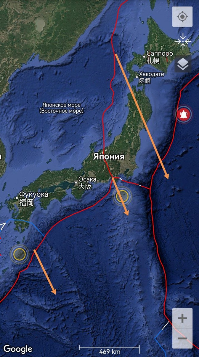 Судя по сегодняшнему смещению ОСТИ у Японии, Филиппинская плита теперь пошла уже по часовой 🔃, а Охотская - против часовой стрелки.