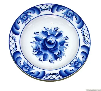 Гжельские изделия изготавливают из белой глины и покрывают белой эмалью. Главные особенности: Сюжеты и орнаменты