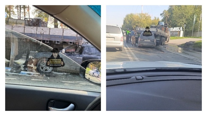 Жесткое столкновение кроссовера с грузовиком произошло на Змеиногорском тракте. Видео