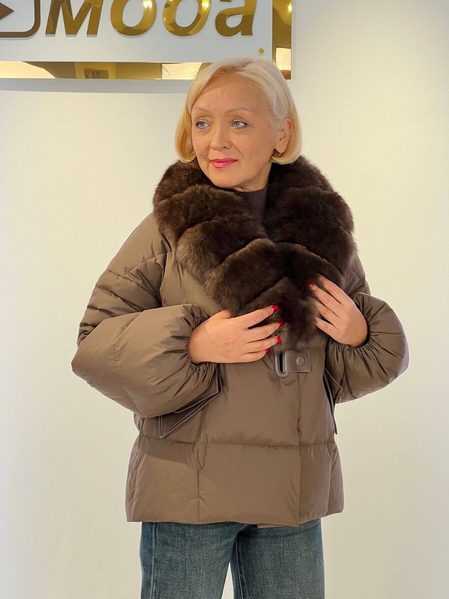 Объёмный воротник из натурального меха соболя придаёт образу элегантность и утончённость. Он мягкий, шелковистый и невероятно красивый 🤎