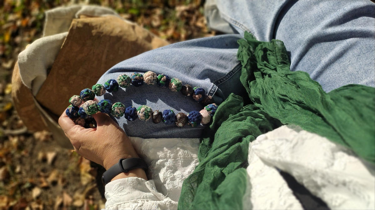 Как в украшении на фото, в ряду с мягкими лоскутными бусинами встречаются твëрдые, грубые, брутальные керамические, так и течение дней тут и там на пути плавного потока милых событий – бац! – и подкинет булыжину.