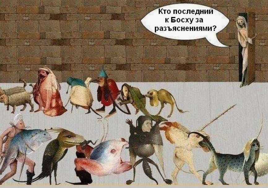 1) Когда я смотрю на то, как устроен мир, мне часто вспоминаются картины Босха. Гениальный был мужик с перпендикулярным видением, подытоживший суть человечества средневековых (да и не только) времен художественных образах. Он отлично уловил всю соль человеческой природы и в его сюрреалистических картинах я нахожу для себя умиротворение и важную мораль: вокруг во все времена происходит какая-то шляпа, лучше относиться к ней с иронией и долей стеба. Этот принцип не раз выручал меня в жизни)