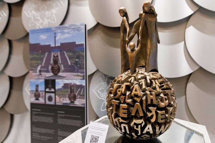 Альфред Хаджи в БО сообщил, что эскиз памятника «Туган тел» готов. Идея такова: шар символизирует земной шар, некий татарский глобус,то есть татарский мир. На нём изображены буквы из различных алфавитов, которыми пользовался татарский народ в разные времена. Сверху — намёк на стихотворение Тукая «Туган тел»: ребёнок, родители и бабушка, рассказывающая сказку (әткәм-әнкәмнең теле, әбкәм хикәят сөйләгән). Шар будет установлен на восьмигранный постамент. В целом дизайн получился достаточно интересный: глобус, символ татарского мира, наши письменности, показанные во весь размах. Автор стремился подчеркнуть преемственность традиций. Есть и отсылка к Тукаю, к теме родного языка и семьи. Мне кажется букв слишком много, композиция перегружена, и воспринимать шар трудно. Он крупный, а люди рядом кажутся слишком маленькими. Буквы даже больше человеческих голов. Фигуры семьи выглядят абстрактно, холодно, словно неживые. Хотели показать семью — надо было сделать её тёплой. А здесь — лишь тени. Э