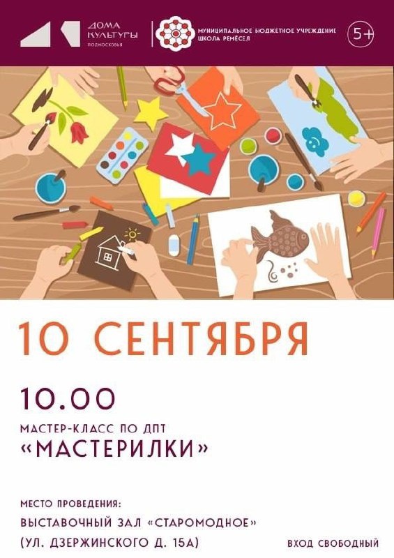 🍁 «Мастерилки» в Школе ремесел Наступила осень, и в Школе ремесел пройдет серия творческих мастер-классов. 10 сентября вас ждет сюжетная аппликация с использованием цветной бумаги и подручного материала «Осенний букет». Вход свободный. Дата: 10 сентября в 10.00 Место: г.Коломна, ул.Дзержинского, 15А, выставочный зал "Старомодное" 📲Наш канал: КоломнаZдесь 🔼🔼🔼🔼🔼🔼🔼 🔊Наш чат: КоломнаZдесь чат ⬆️⬆️⬆️⬆️⬆️⬆️⬆️ ✍️Публикации, вопросы, реклама: @Maksim5889 ⏫️⏫️⏫️⏫️⏫️⏫️⏫️