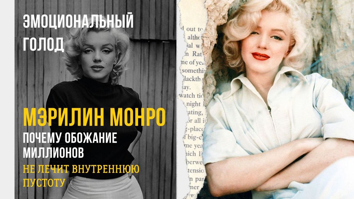 Здесь и рождается тот самый эмоциональный голод. Представьте, что внутри вас — огромная черная дыра. Кидайте в нее сколько угодно комплиментов, признаний, взглядов восхищения — они бесследно исчезнут, не насытив вас. Потому что эта дыра может быть заполнена только из одного источника — безусловной любовью и принятием себя. А их-то у Нормы Джин и не было.