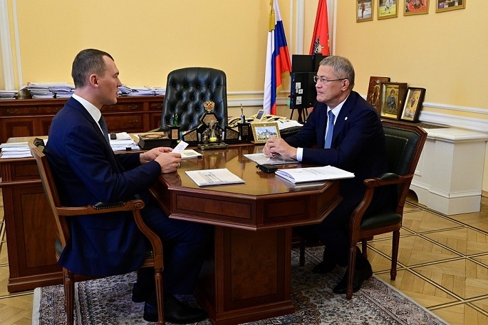 Глава Башкортостана Радий Хабиров встретился с министром спорта России Михаилом Дегтяревым. Главной темой разговора, состоявшегося в Москве вчера, 9 сентября, стало строительство в республике спортивных объектов с привлечением федеральных средств и частных инвестиций, а также проведение спортивных мероприятий всероссийского уровня. Михаил Дегтярев подчеркнул, что Башкирия традиционно входит в число регионов-лидеров по уровню вовлеченности жителей в занятия физкультурой и обеспеченности спортивной инфраструктурой, и высоко оценил работу руководства республики в сфере развития физкультуры и спорта. — Мы поддерживаем все ваши начинания. Очень приятно помогать там, где есть обратная связь и заинтересованные региональные власти. Вам везде зеленый свет, — сказал министр спорта страны. — Мы очень признательны за ту поддержку, которую получаем, — поблагодарил Радий Хабиров. Он рассказал, как в Башкортостане реализуется федеральный проект «Бизнес-спринт (Я выбираю спорт)», в рамках которого при