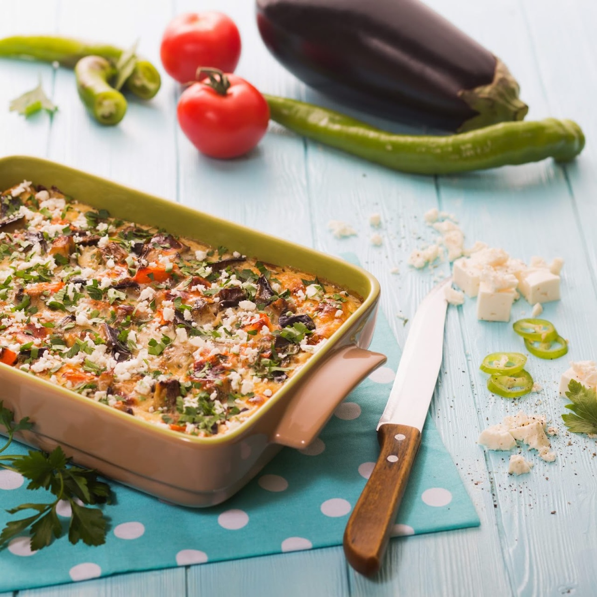 Мне трудно сказать, какой овощ я люблю больше всего. Пожалуй, люблю все, потому что, как правило, они выступают удачными сочетаниями, а не употребляются в одиночку, хотя и последнее тоже неплохо. В чистом виде я могу тоннами поглощать, разве что, брокколи и цветную капусту, а все остальное предпочитаю в виде салатов, запеканок, рагу и так далее. Сегодня у нас будет два основных игрока: томат и баклажан. Вместе они объединяются в легкое, сочное блюдо, которое было бы немного пресным, если бы не удачное дополнение в виде солоноватой расплавленной брынзы и ароматной зелени. Быстро и просто мы с вами сделаем удачный, не избитый гарнир, который отлично подойдет и к обеду и к ужину. Он будет замечательно смотреться как самостоятельно, так и в дополнение к мясу или рыбе, не утяжелит вечерний прием пищи и станет ярким и запоминающимся элементом вашей трапезы. Присоединяйтесь, ведь овощи это чудесно! Ингредиенты: Баклажаны и томаты нарезать средним кубиком (около 1.5см). Обжарить баклажаны на р