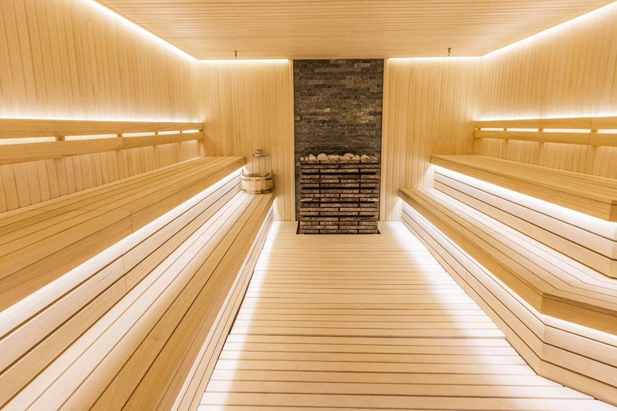 Здесь есть не только традиционные парные, но и соляные комнаты, а также зона релакса с приглушенным светом и «звездным небом» на потолке. В ней стоят лежаки с водяными матрасами.