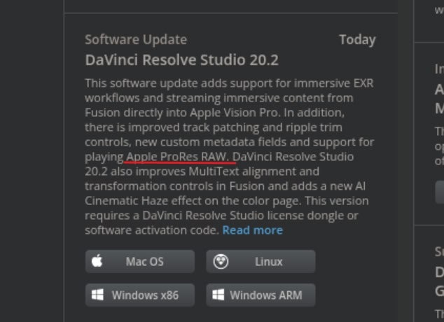 В сегодняшнюю версию Davinci завезли поддержку Apple ProresRAW.
