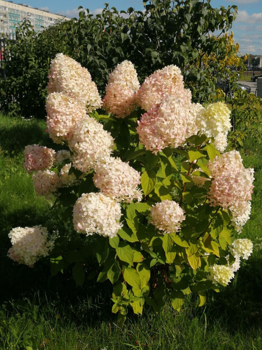 Однажды, прогуливаясь по солнечной улице, я заметила красивый куст гортензии, который словно магнит притягивал взгляд. Его крупные пушистые соцветия нежно-розового и кремового оттенков нежно переливались на фоне зелёной листвы. Я остановилась, чтобы полюбоваться этой природной красотой — цветы казались такими живыми и радостными, будто хотели поделиться своим настроением.