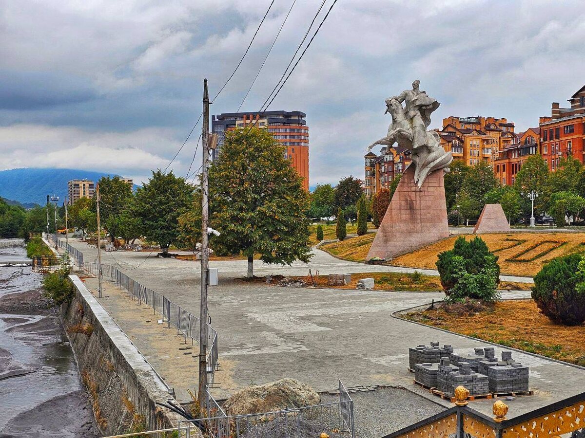 «Уже вышли на завершающую стадию ремонтные работы в районе памятника Исса Плиеву. В досуговой зоне уложили брусчатку, смонтировали систему освещения. Еще предстоит завершить замену парапета – 140 метров ограждения уже выполнено в архитектурном бетоне. Сейчас проходит этап сушки блоков, затем их установят с чередующимися коваными деталями вдоль реки»,- написал мэр города.