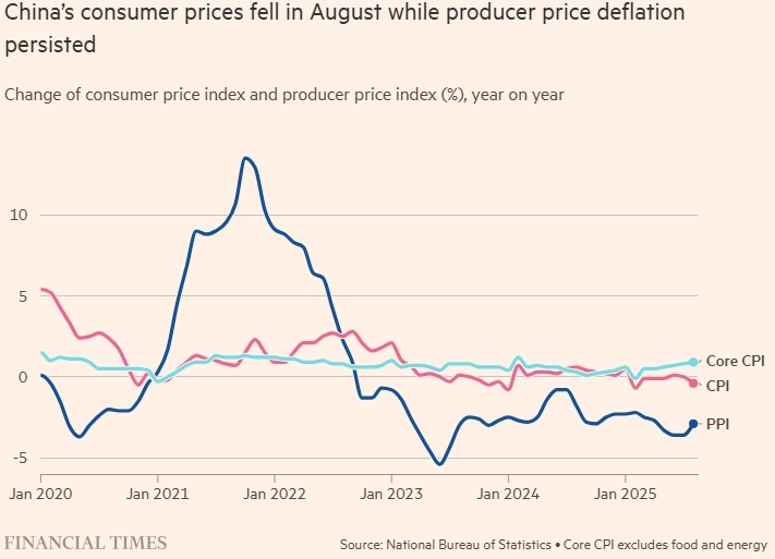 Пекин попытался обуздать чрезмерное промышленное производство и увеличить расходы, чтобы сдержать падение цен В августе в Китае была зафиксирована дефляция, что стало ещё одним свидетельством замедления роста второй по величине экономики мира после снижения темпов экспорта в предыдущем месяце. По данным Национального бюро статистики КНР, индекс потребительских цен в августе снизился на 0,4% в годовом исчислении. Это оказалось более значительным падением, чем прогнозируемое аналитиками Bloomberg снижение на 0,2%. В июле индекс оставался неизменным. Темпы роста промышленного производства также замедлились: в августе они составили 2,9% в годовом исчислении, что ниже показателя июля (3,6%). Впервые за последние пять месяцев наблюдается положительная динамика. Слабые экономические показатели могут привести к усилению антиинфляционной политики Пекина. Власти будут оказывать давление на некоторые отрасли для сокращения перепроизводства и восстановления ценовой политики. Главный статистик Наци
