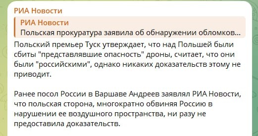Относительно сегодняшних разговоров про нарушения воздушного пространства Польши во время атаки ВС РФ по объектам ВСУ и кому выгодно
