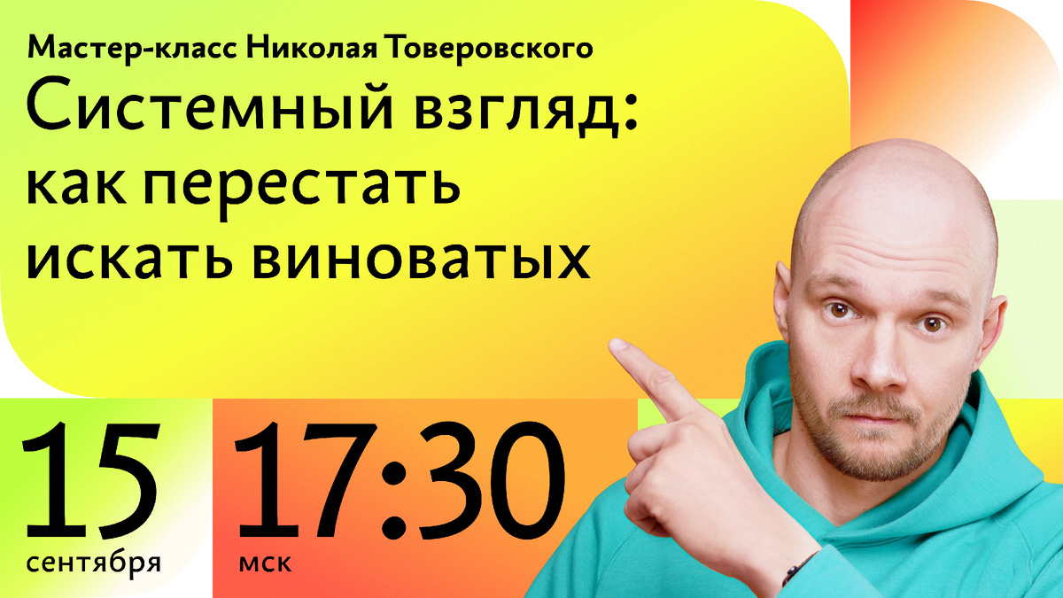 В ПН 15 сентября в 17:30 мск — мастер‑класс Николая Товеровского «Системный взгляд: как перестать искать виноватых»