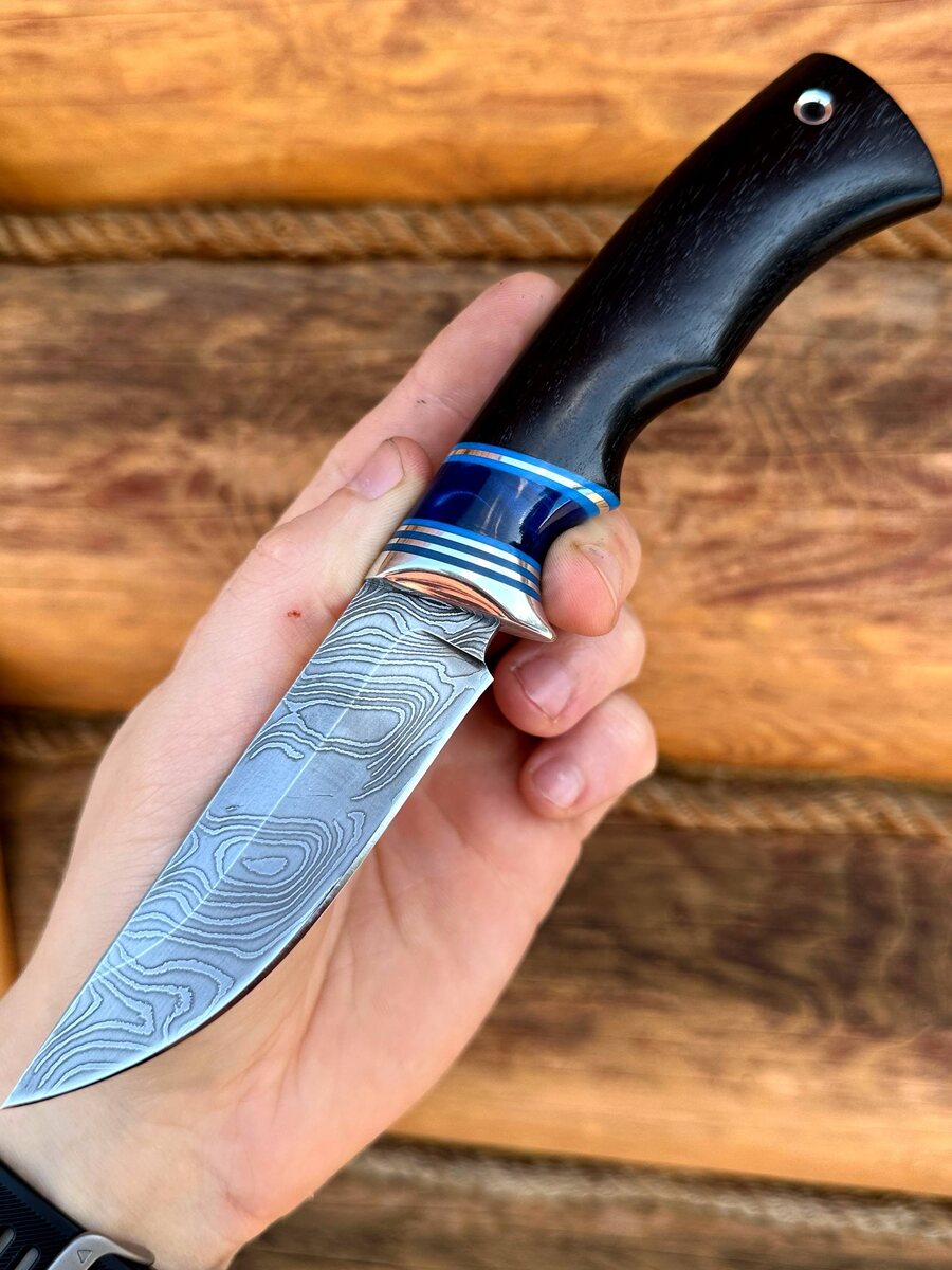 📸 Горячая новинка для настоящих ценителей ремесла! ⠀ Маленький, но мощный нож из волнистого дамаска (950 слоев) – надёжный помощник для охоты, рыбалки и даже кухни! ⠀ 🔹 Клинок: • Волнистый дамаск – 950 слоев, узор уникален для каждого ножа • Спуски от середины – прочность и контроль даже при боковых нагрузках • Твердость 62 HRC – режет как бритва, сохраняет остроту ⠀ 🔹 Рукоять: • Анатомическая форма — удобно лежит в руке • Синий акрил + черный граб — не только красиво, но и надёжно ⠀ 🔹 Комплектация: • Кожаные ножны ручной работы ⠀ 🔥 Цена: 10 260₽, со скидкой: 8 721₽ ⠀ Для кого подойдёт? — Охотники: удобно для ошкуривания и разделки — Рыбаки: точный и чистый рез — Любой, кто ценит работу мастера и качество ⠀ 📲 Заказ и вопросы — @Nazarklinokbot или WhatsApp/Viber +7 910 134-38-31